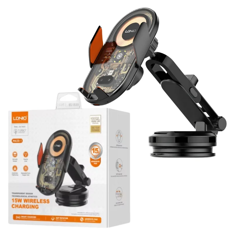 El LDNIO MA30-1 es un soporte magnético para Celular para auto con sujeción automática y carga inalámbrica de 15W, diseñado para teléfonos inteligentes con estándar Qi. Ofrece funcionalidad ajustable y portátil, admite entrada de CC de 12-24V y está hecho de material ABS duradero, asegurando un rendimiento confiable tanto en interiores como en exteriores.