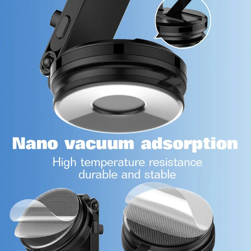 Base con sopapa (ventosa) que se adhiere firmemente al parabrisas o tablero.