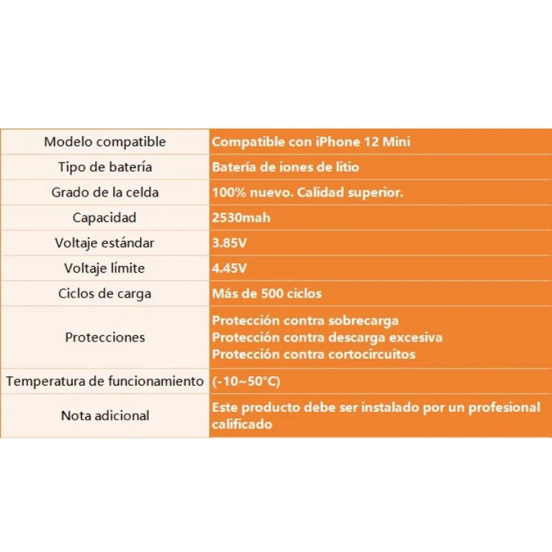 ¿Tu iPhone 12 Mini ya no dura como antes? Recuperá su autonomía con esta batería ORYRO de 2530mAh, diseñada para garantizar un rendimiento confiable y seguro, manteniendo la eficiencia de tu equipo.
