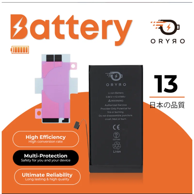 Recuperá la autonomía de tu iPhone 13 con esta batería ORYRO de 3250mAh, diseñada para ofrecer un rendimiento confiable y duradero, igualando la capacidad original del equipo.