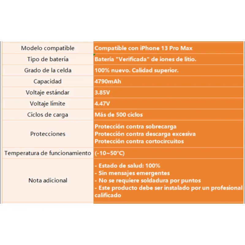 Batería Para Iphone 13 Pro Max 4790mah Oryro AutoprogramableBatería ORYRO para iPhone 13 Pro Max – 4790mAh Alta Capacidad Extendida Autoprogramable