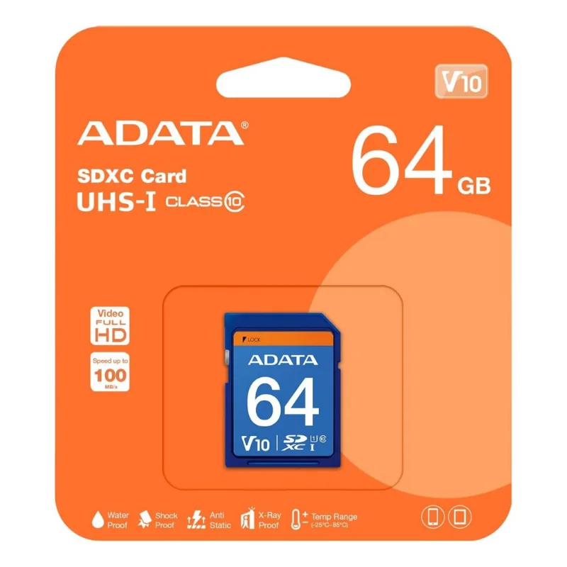 Capacidad y Rendimiento de Video Con una capacidad de 64GB, esta tarjeta permite almacenar miles de fotografías en alta resolución o varias horas de video sin necesidad de interrumpir tu trabajo para cambiar de unidad. Cuenta con la calificación V10 de velocidad de video, lo que asegura una grabación constante y sin saltos de hasta 10 MB por segundo, ideal para contenidos en Full HD.