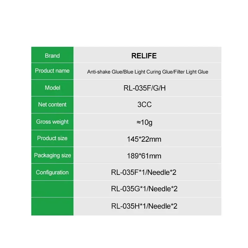 Adhesivo Uv Reparación Antivibración Para Cámara Relife RL-035FDisponibilidad: Hay existencias