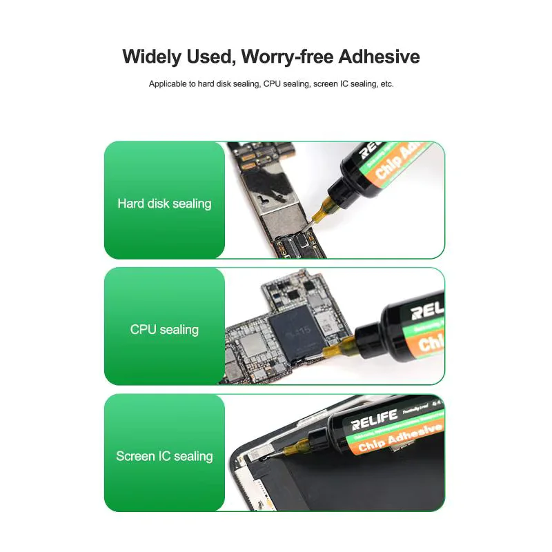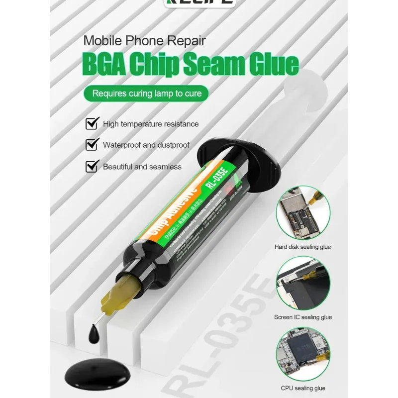 El adhesivo UV RELIFE RL-035E está diseñado para técnicos especializados en microsoldadura y reparación avanzada de placas electrónicas. Es una solución estructural de alta resistencia pensada para reforzar, sellar y reconstruir zonas críticas en placas de celulares y dispositivos electrónicos de alta densidad.