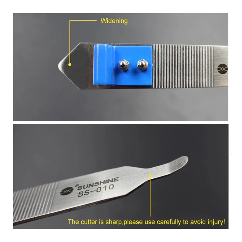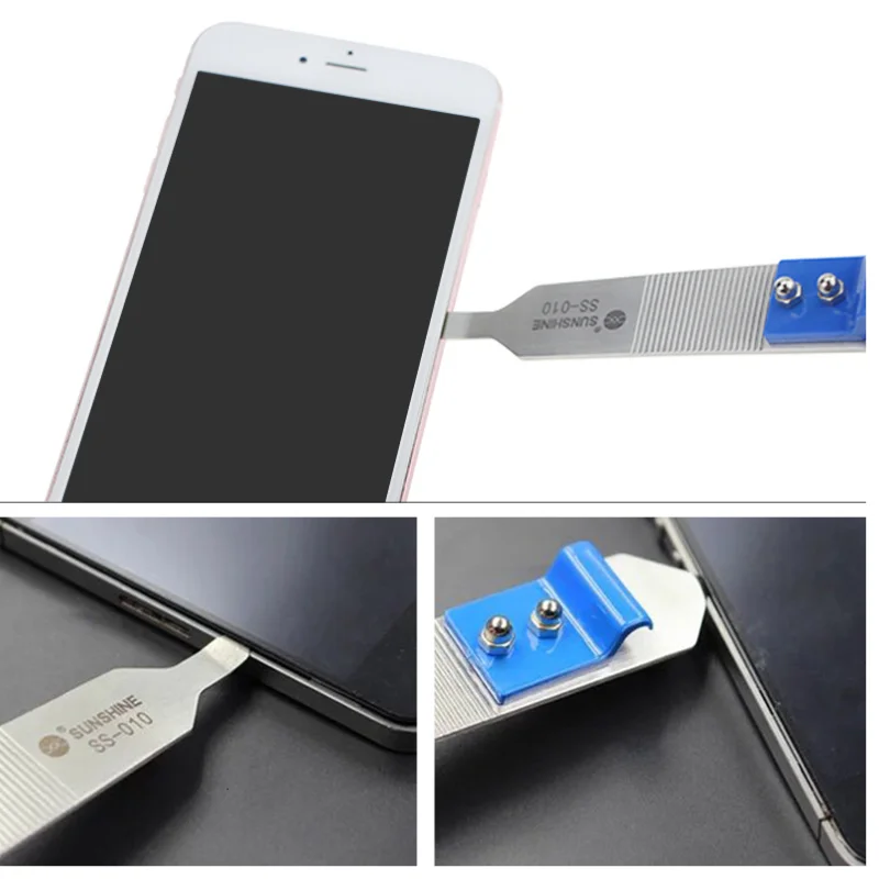 La Sunshine SS-010 es una herramienta de precisión diseñada para técnicos que exigen máxima eficiencia en la apertura de dispositivos móviles modernos. Su estructura de acero de alta calidad permite acceder a las ranuras más estrechas entre la pantalla y el marco, facilitando el desarmado sin comprometer la integridad de la carcasa.
