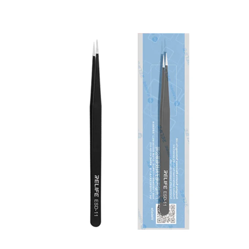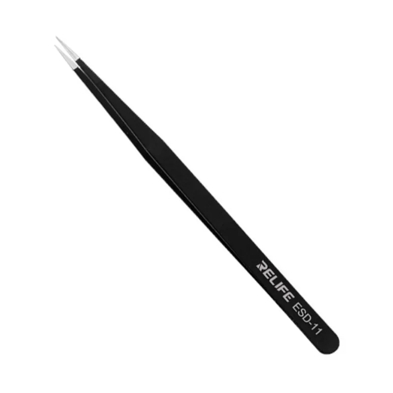 La RELIFE RL-ESD-11 es una pinza de precisión recta diseñada para trabajos delicados en reparación electrónica y microsoldadura. Su diseño permite manipular con exactitud componentes SMD, cables finos y microcomponentes, facilitando tareas de ensamblaje, posicionamiento y reparación de placas electrónicas.