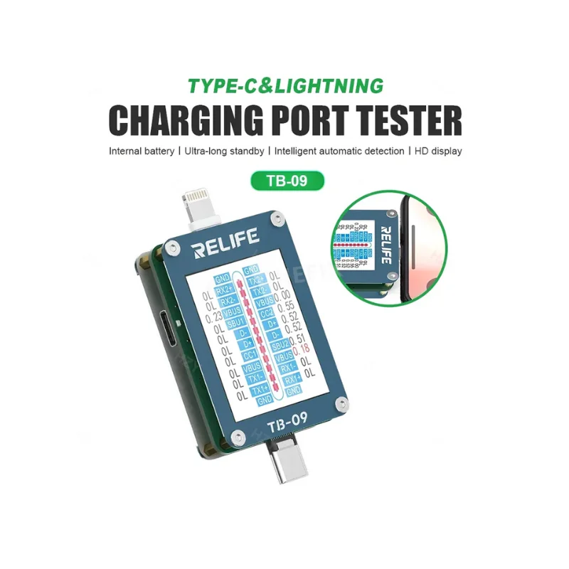 El comprobador de puerto de carga RELIFE es una herramienta profesional diseñada para diagnóstico rápido y preciso de conectores USB en dispositivos móviles y computadoras. Su compatibilidad múltiple permite trabajar con teléfonos Android, iPhone, equipos con puerto Tipo C y dispositivos con interfaz Lightning, convirtiéndolo en un aliado indispensable para servicios técnicos y laboratorios de electrónica.
