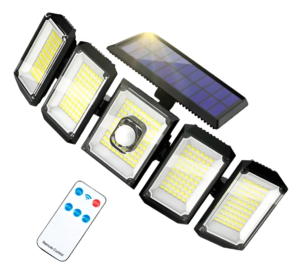 Foco Solar 45w 2400mah 300led 5 Cabezas Con Sensor Y ControlFoco Solar 45w 2400mah 300led 5 Cabezas Con Sensor Y Control