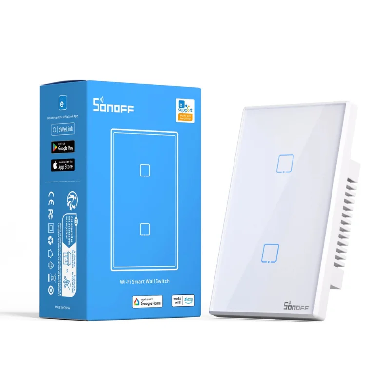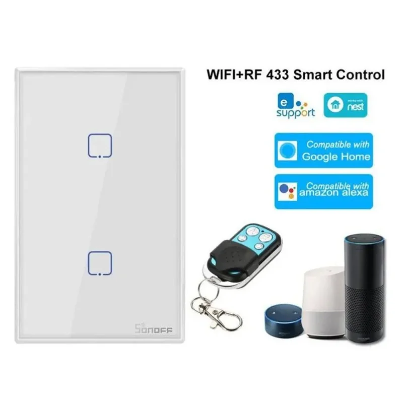 Interruptor Pared 2 Botones Sonoff T2US2C Wifi + 433 MhzInterruptor Pared 2 Botones Sonoff T2US2C Wifi + 433 Mhz