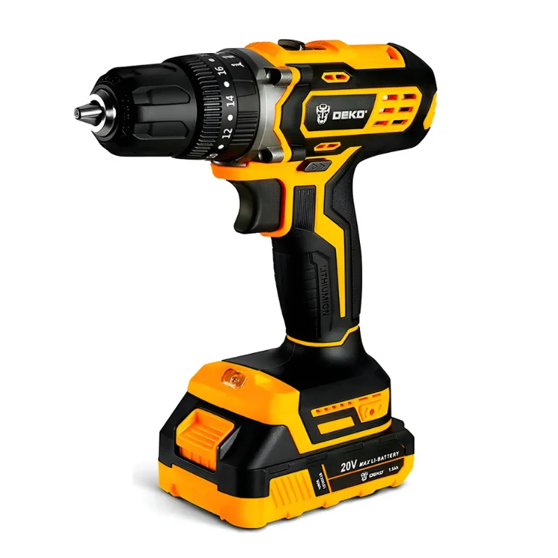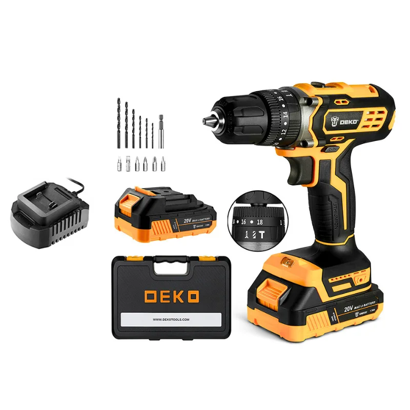 Taladro Percutor Inalámbrico 20v 10mm 42nm Deko con 2 Baterías 1.5AhTaladro Percutor Inalámbrico 20v 10mm 42nm Deko con 2 Baterías 1.5Ah